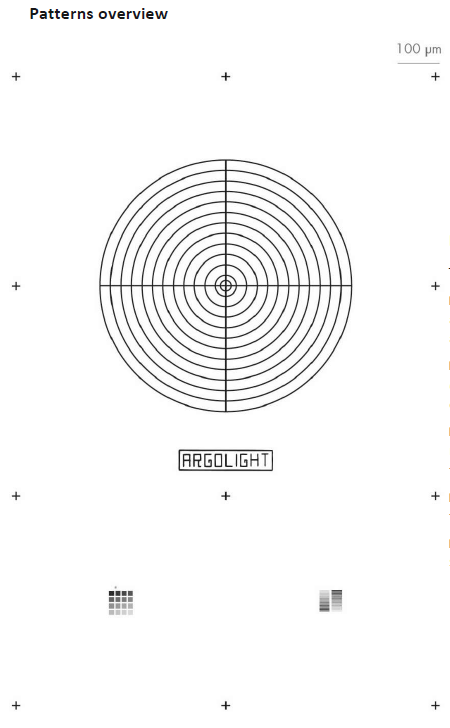 圖案J –徽標。此圖案由字母組成公司名稱“ Argolight”,并由220μm×50μm框架包圍。